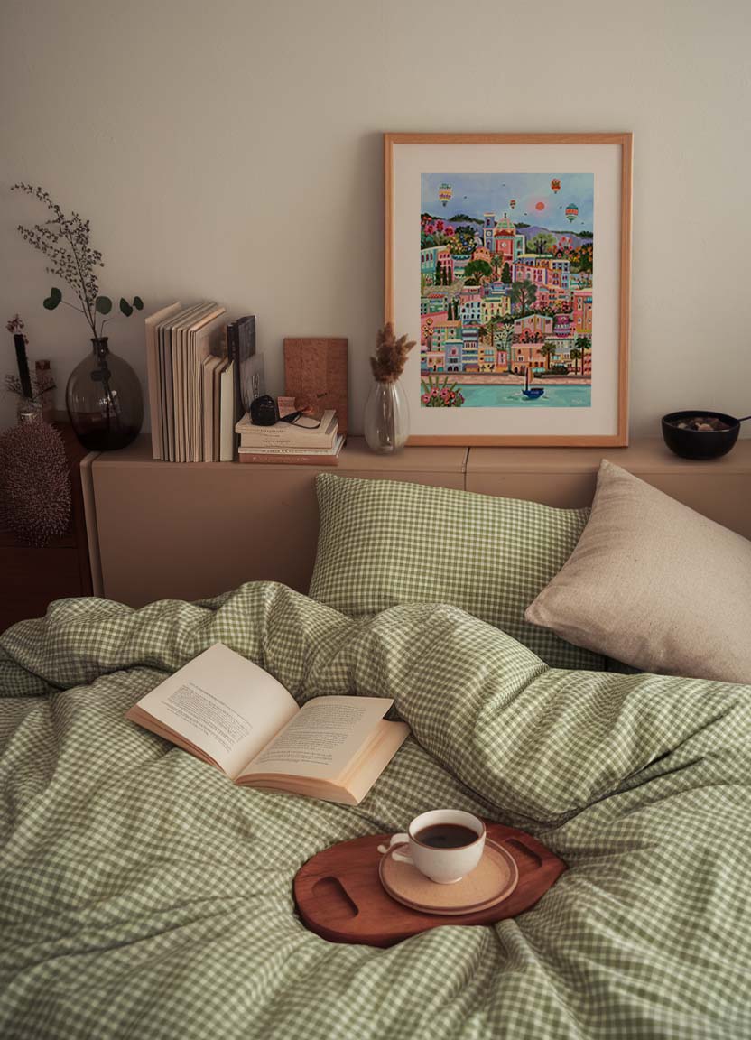 If you order an A2 size, this will be sent carefully rolled in a tube with a protective glassine sheet. Therefore, if you have made an order with multiple print sizes - it may arrive in separate packages. Any prints rolled in a tube will just need to be flattened.