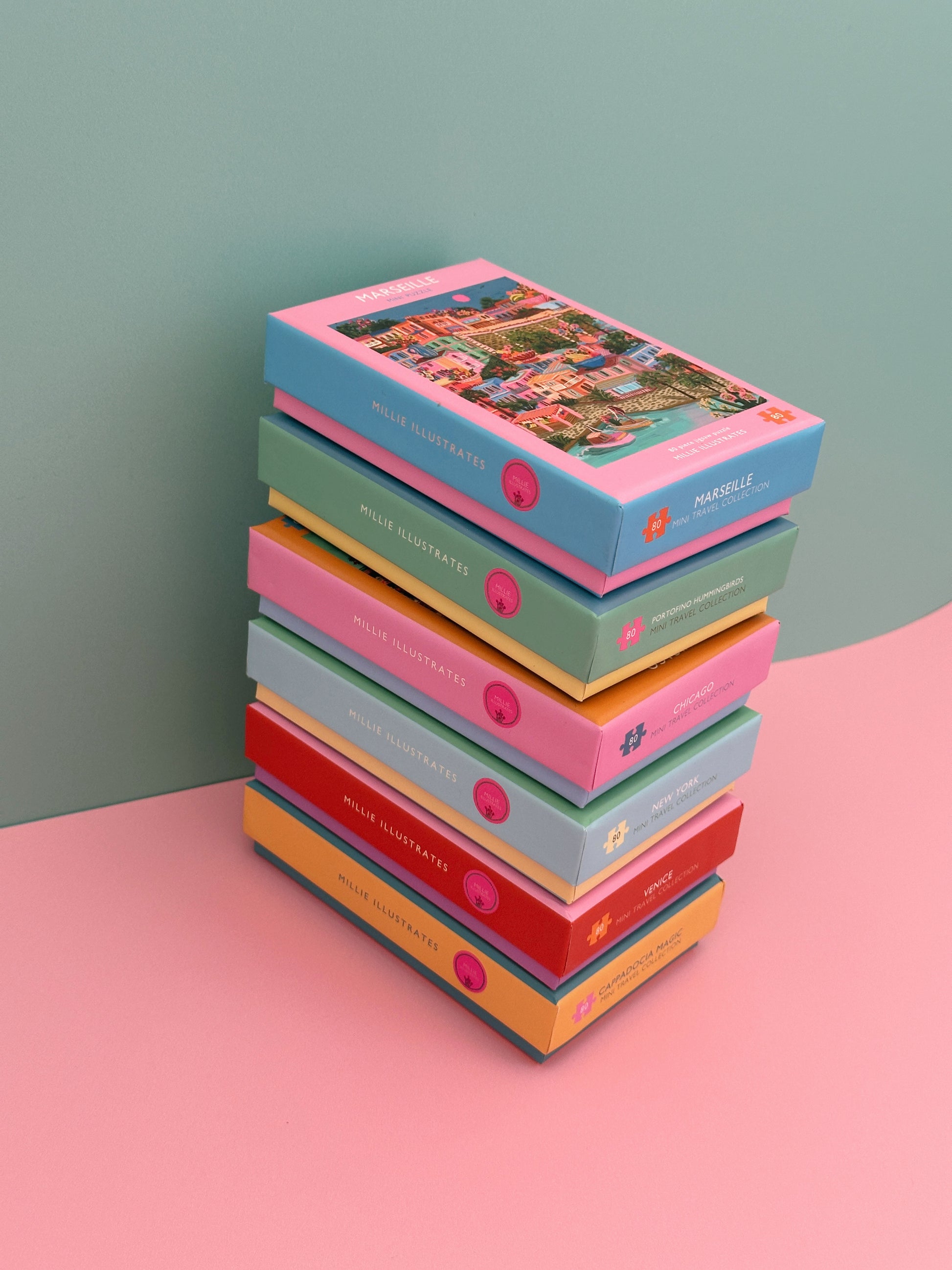 These puzzles are incredibly bright, with a professional finish. Thoughtfully designed so they will look great on your best shelf when they aren't being used with wonderfully vibrant packaging.