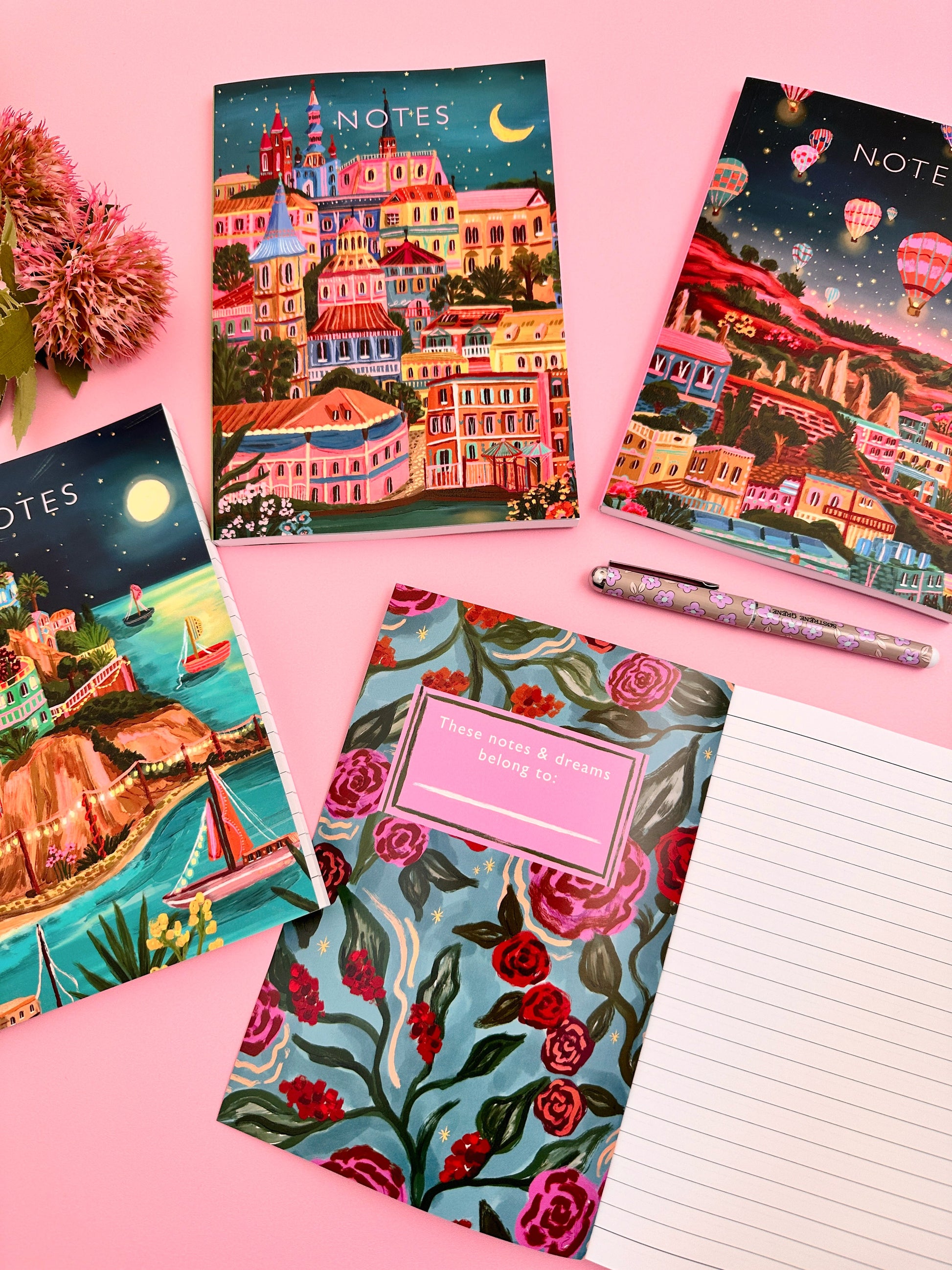 A beautiful notebook inspired by travel destinations. 60 lined pages in each book for your notes, dreams and thoughts; perfect to take with you on the go or to be your desk staple. Each notebook has been thoughtfully designed to take you to a different place around the world.