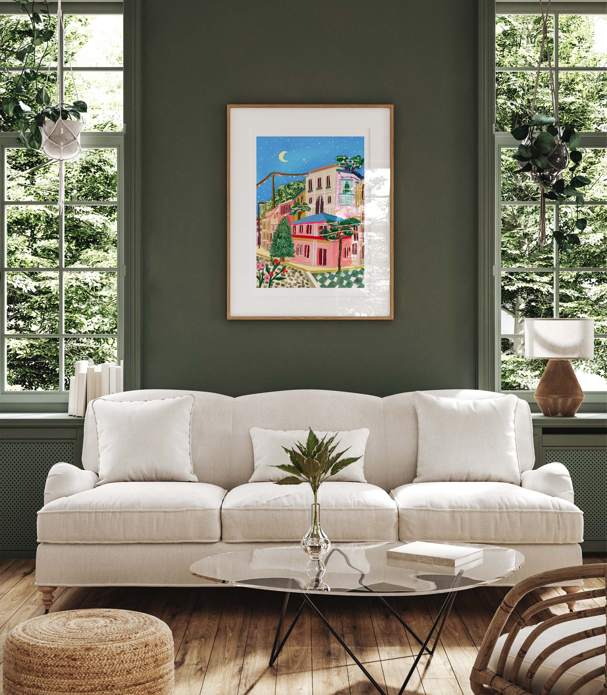 If you order an A2 size, this will be sent carefully rolled in a tube with a protective glassine sheet. Therefore, if you have made an order with multiple print sizes - it may arrive in separate packages. Any prints rolled in a tube will just need to be flattened.