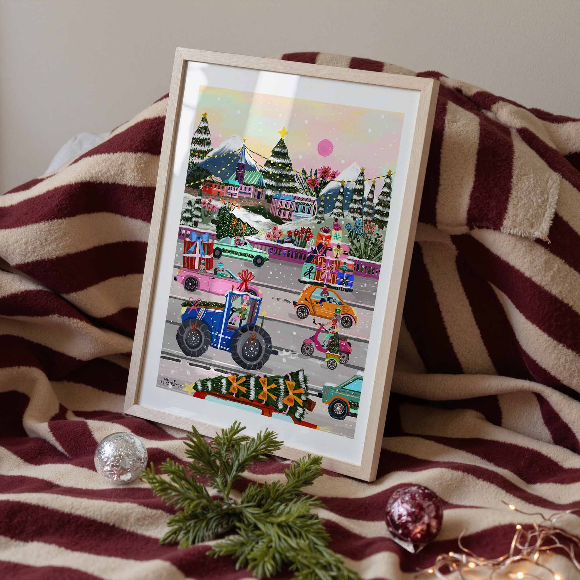 If you order an A2 size, this will be sent carefully rolled in a tube with a protective glassine sheet. Therefore, if you have made an order with multiple print sizes - it may arrive in separate packages. Any prints rolled in a tube will just need to be flattened.