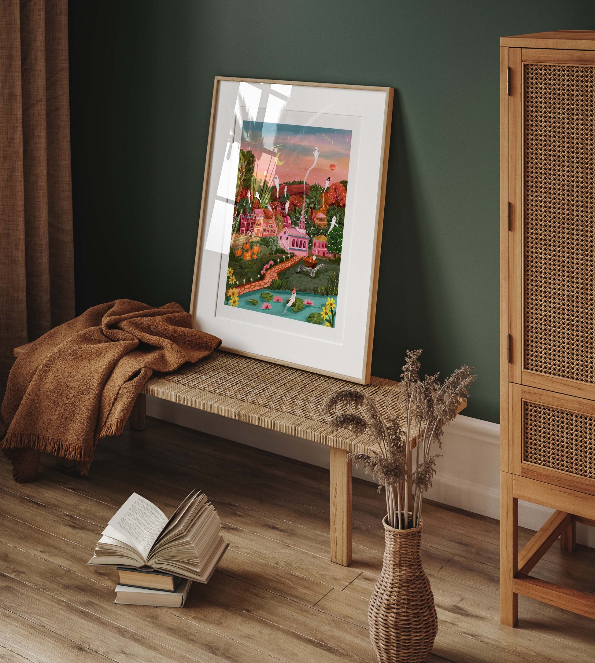 If you order an A2 size, this will be sent carefully rolled in a tube with a protective glassine sheet. Therefore, if you have made an order with multiple print sizes - it may arrive in separate packages. Any prints rolled in a tube will just need to be flattened.