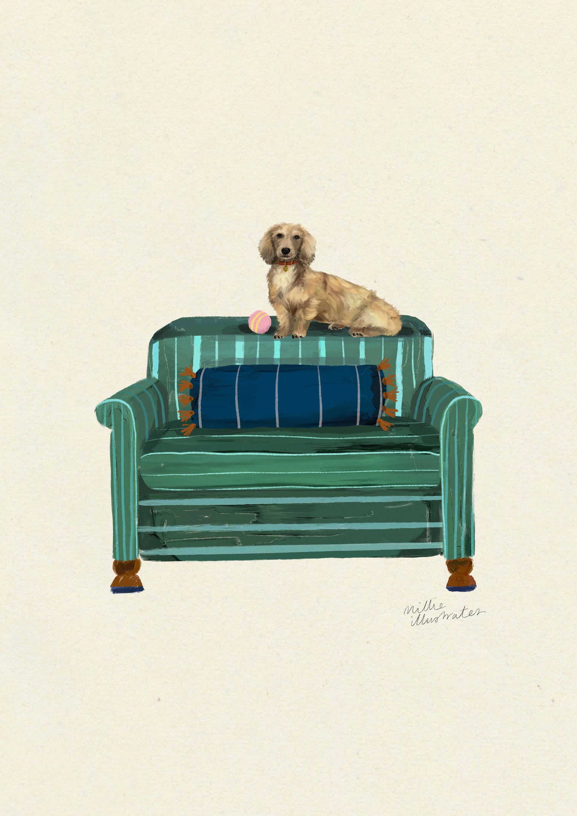 Long Haired Dachshund (Cream/ Blonde) - Dogs on Chairs collection