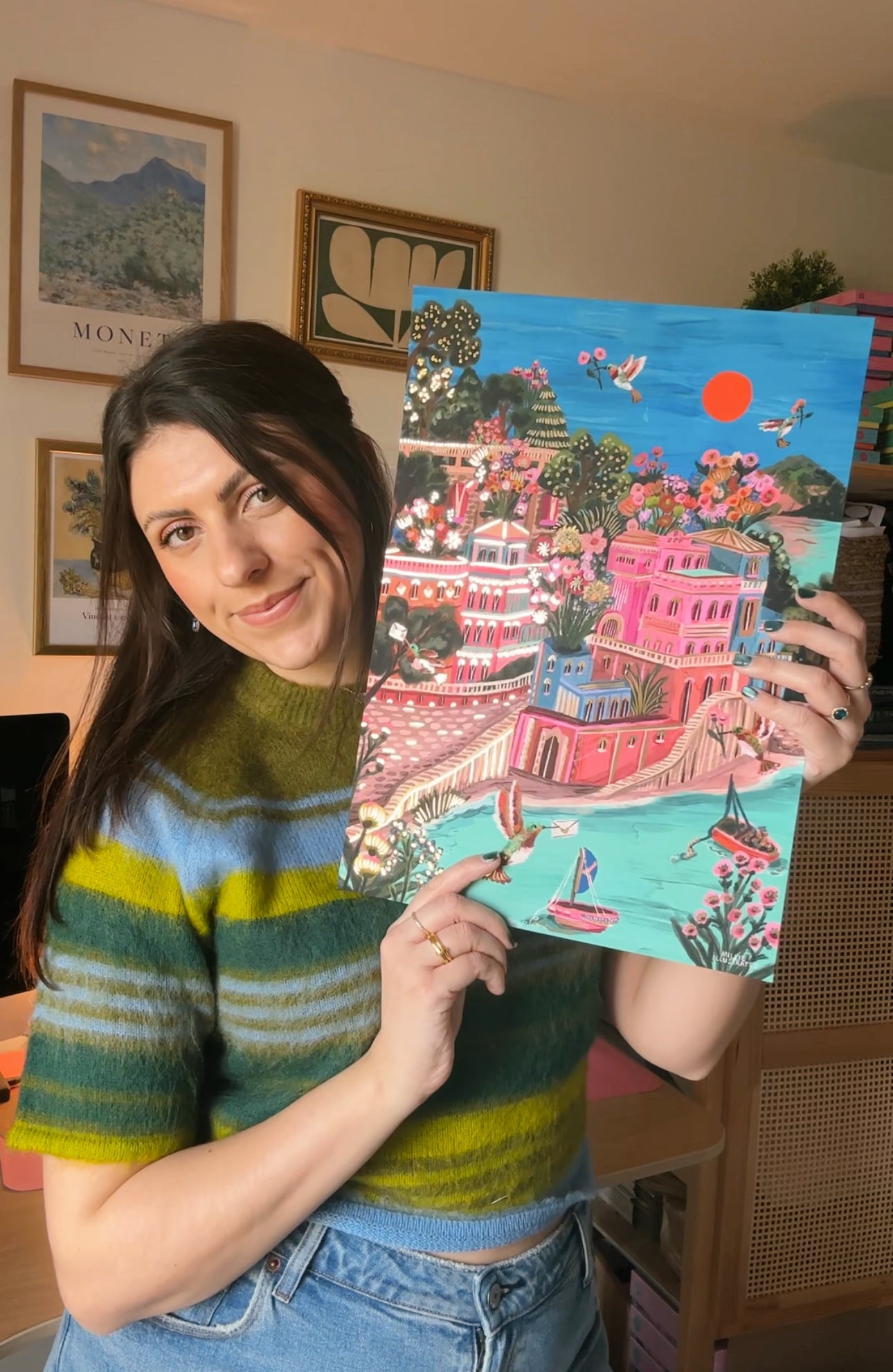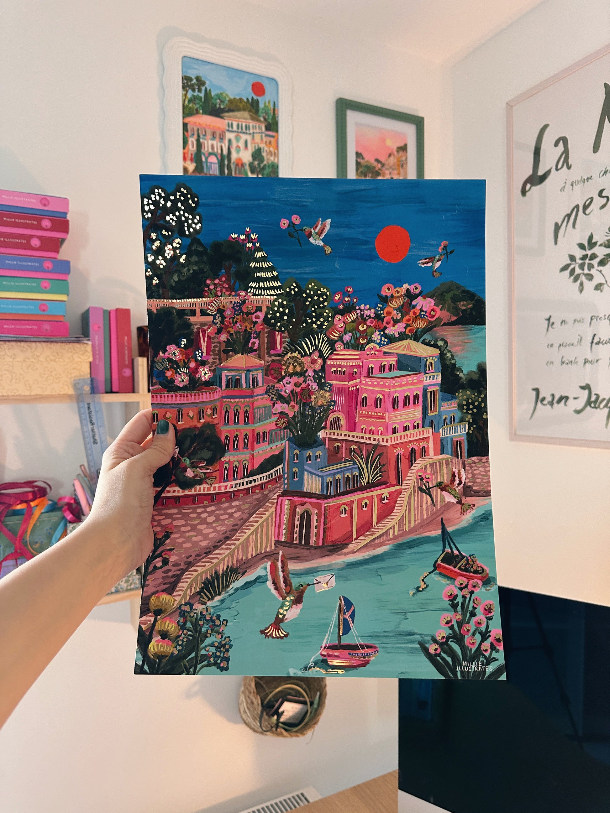 Portofino Hummingbirds GOLD FOIL Print - LIMITED - A3 SIZE