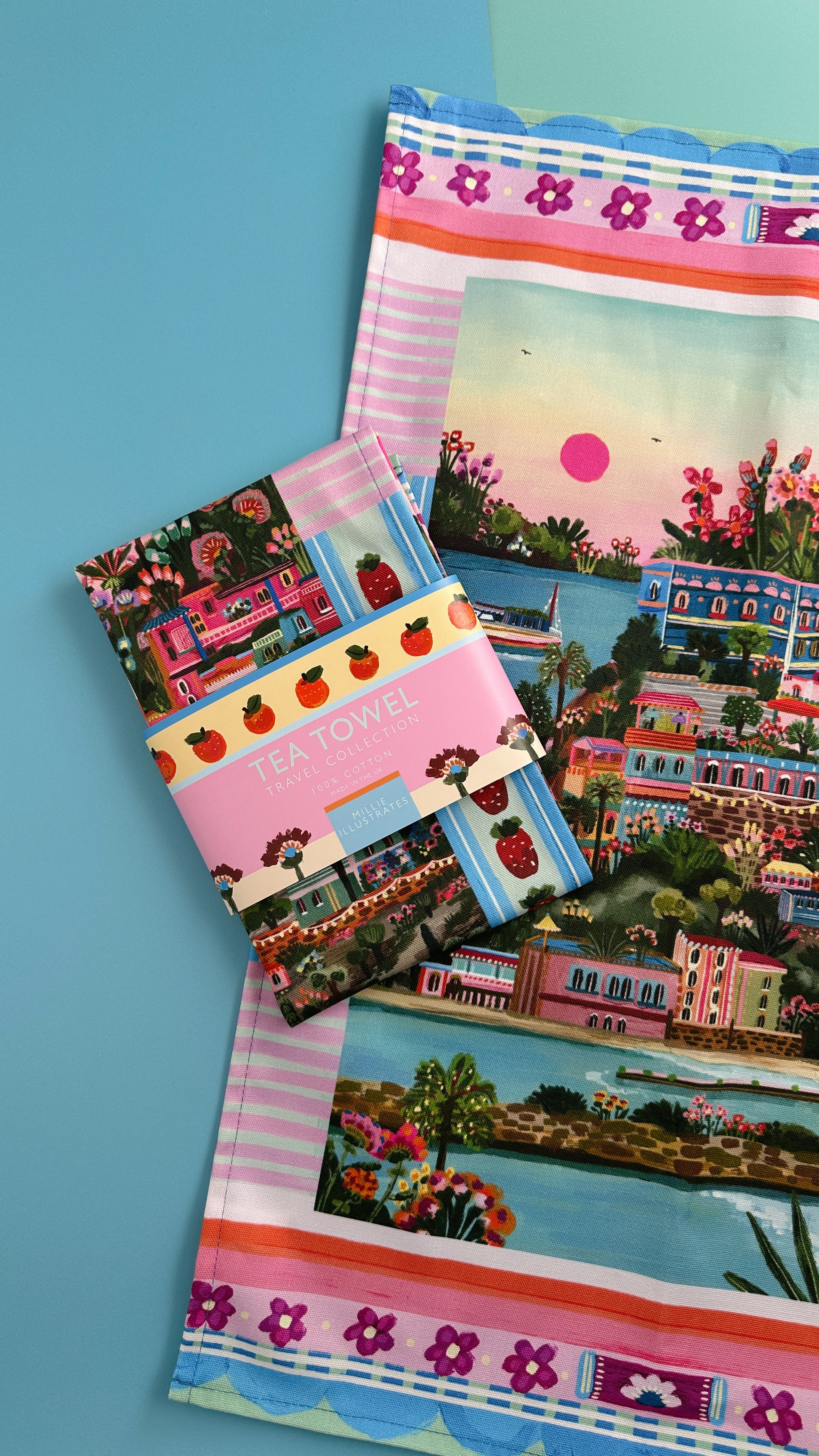Tea towels are back and I've made them even brighter than ever. Each new in tea towel has their own fruit illustration, patterns and colourful borders to make your kitchen the best place to be.