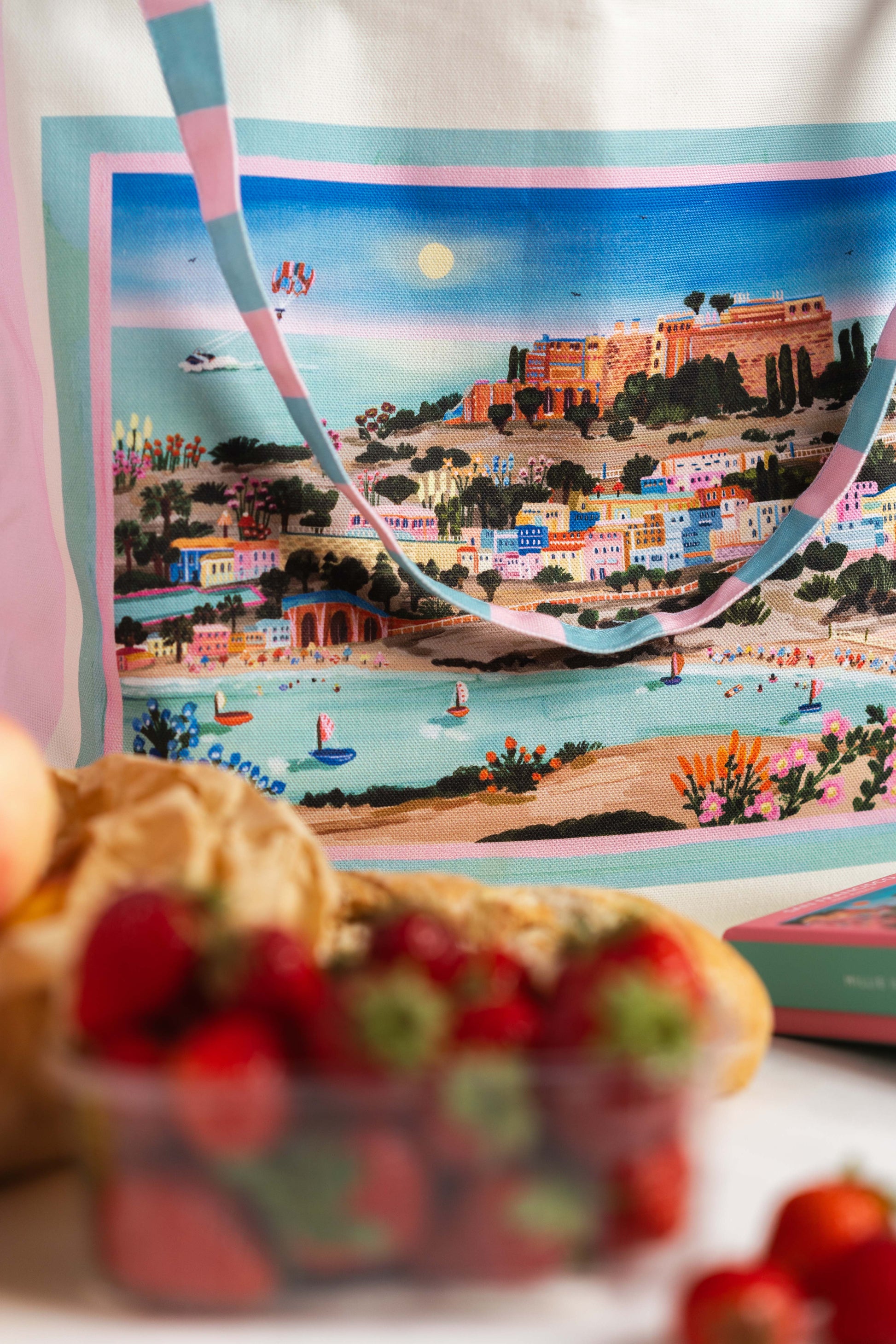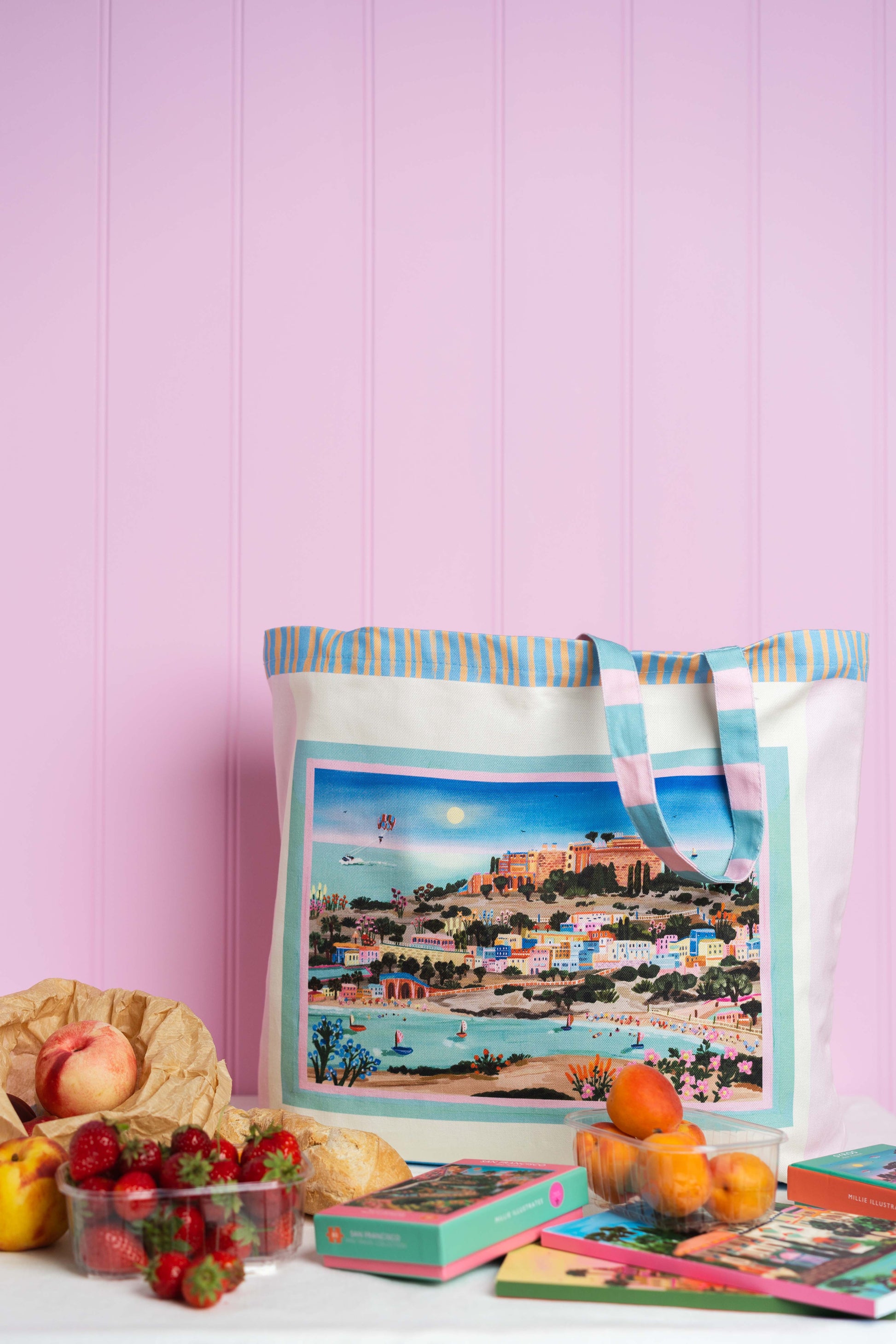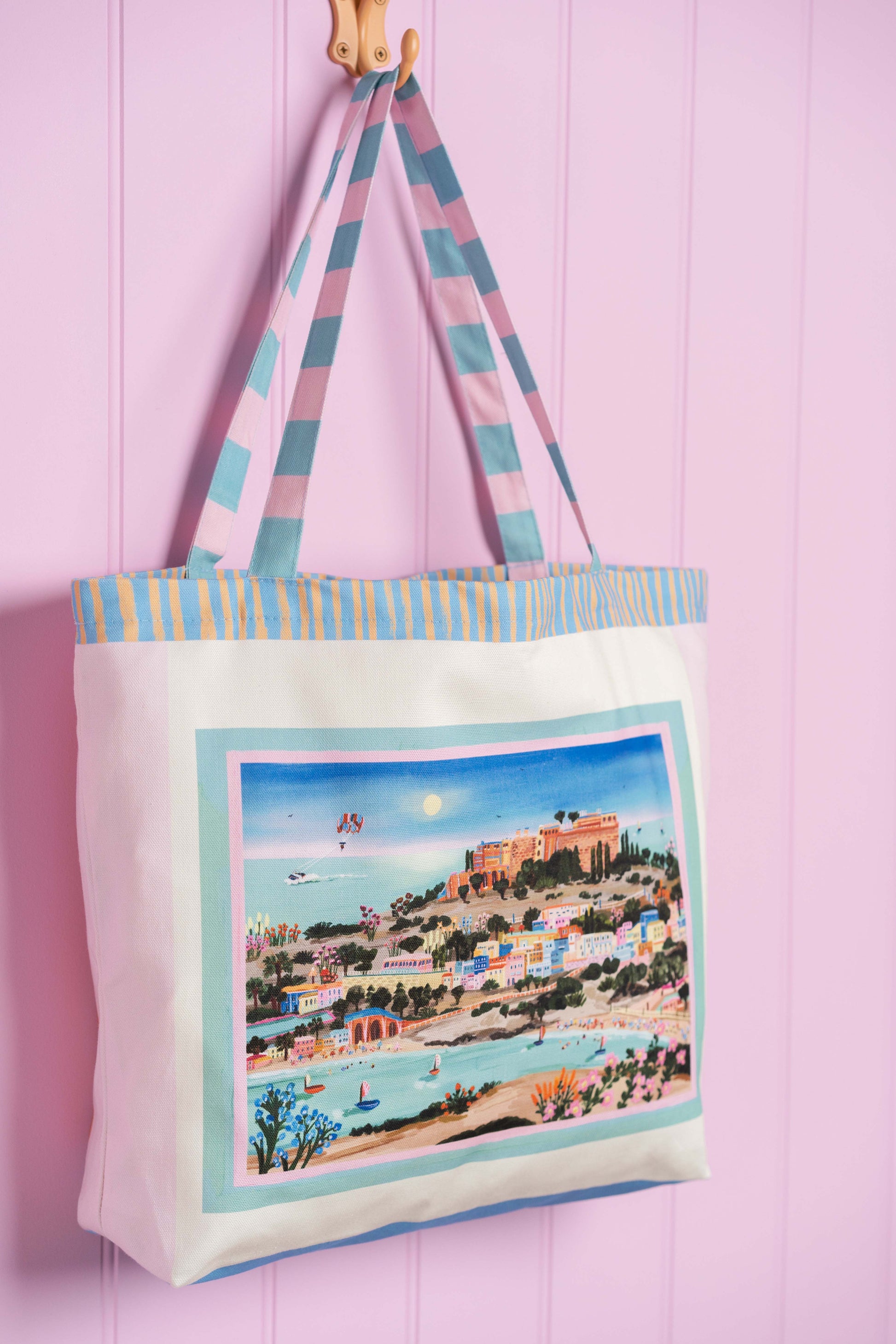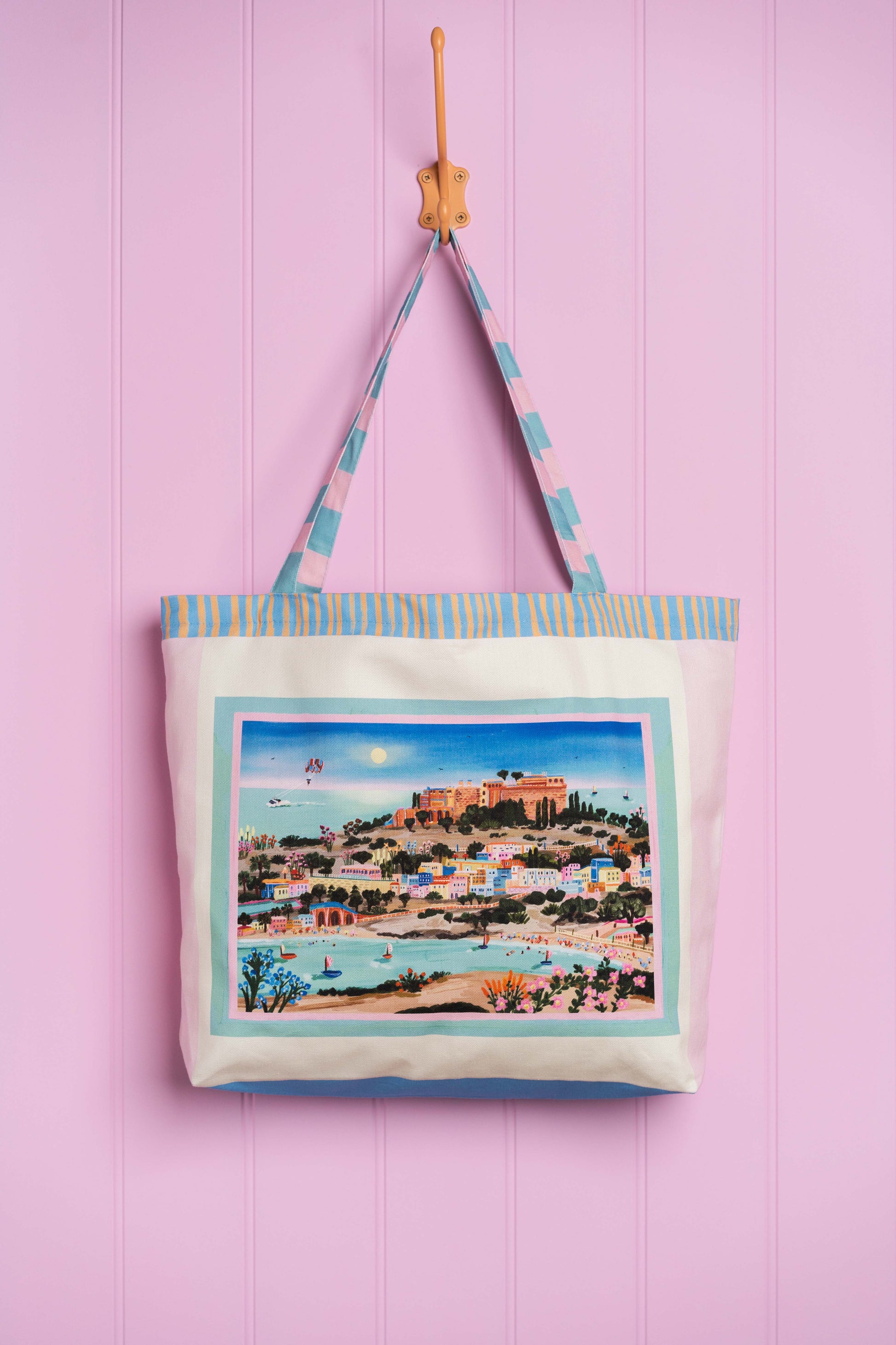 This travel inspired accessory captures the beauty of a greek island summer. Perfect for your everyday adventures, whether that's to the beach, market or just out and about running errands. Designed to be a bold statement whilst being practical to chuck in your summer essentials with ease.