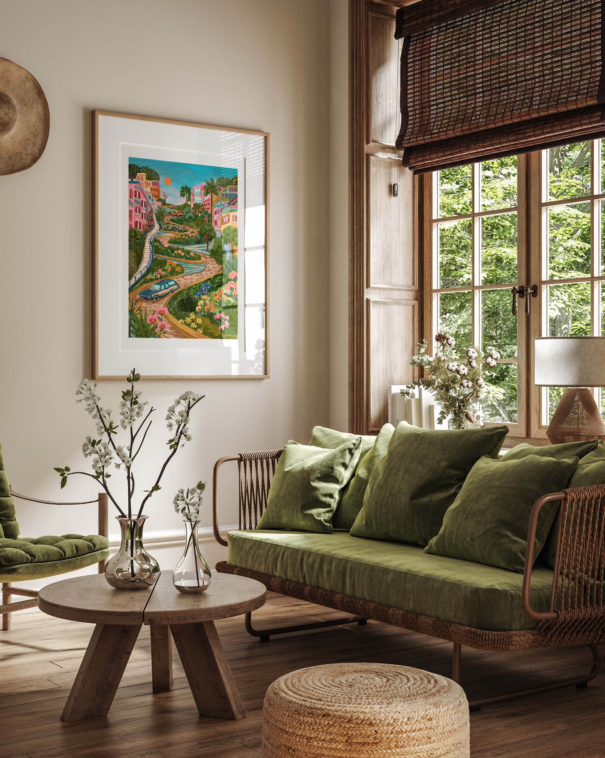 If you order an A2 size, this will be sent carefully rolled in a tube with a protective glassine sheet. Therefore, if you have made an order with multiple print sizes - it may arrive in separate packages. Any prints rolled in a tube will just need to be flattened.