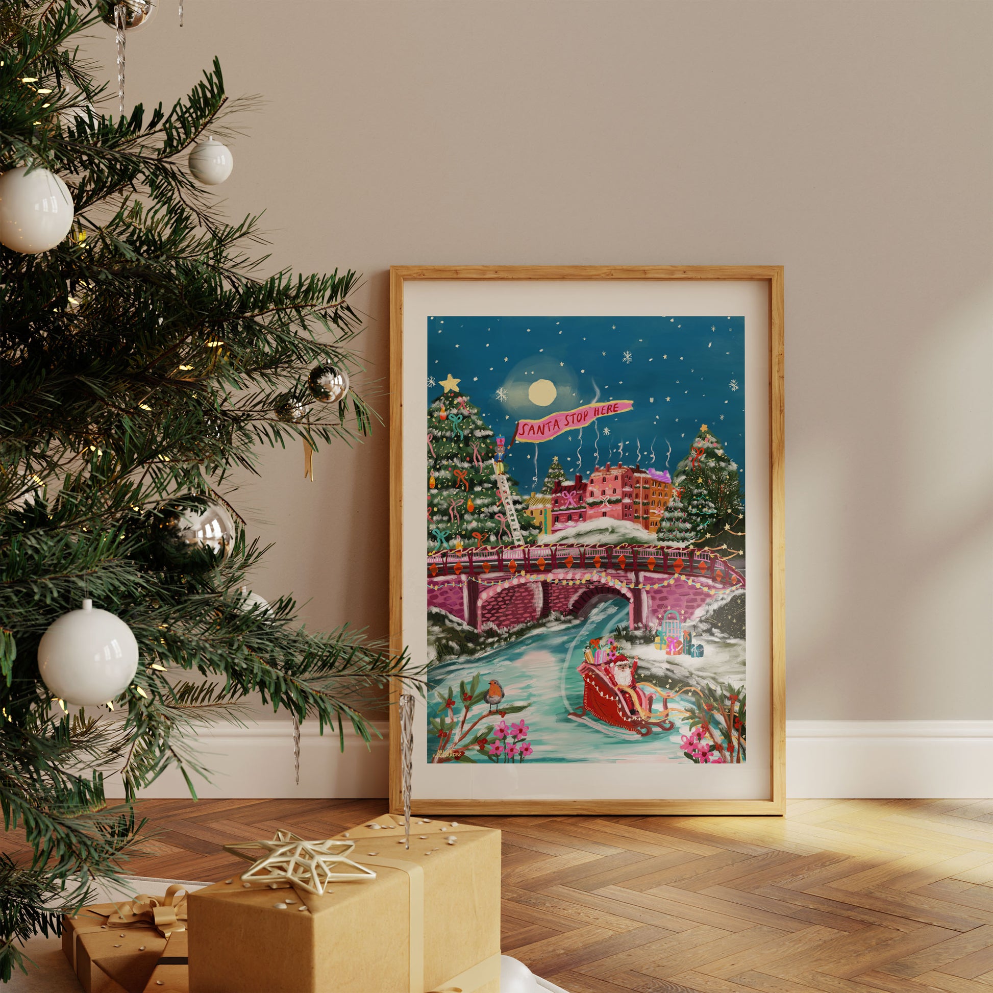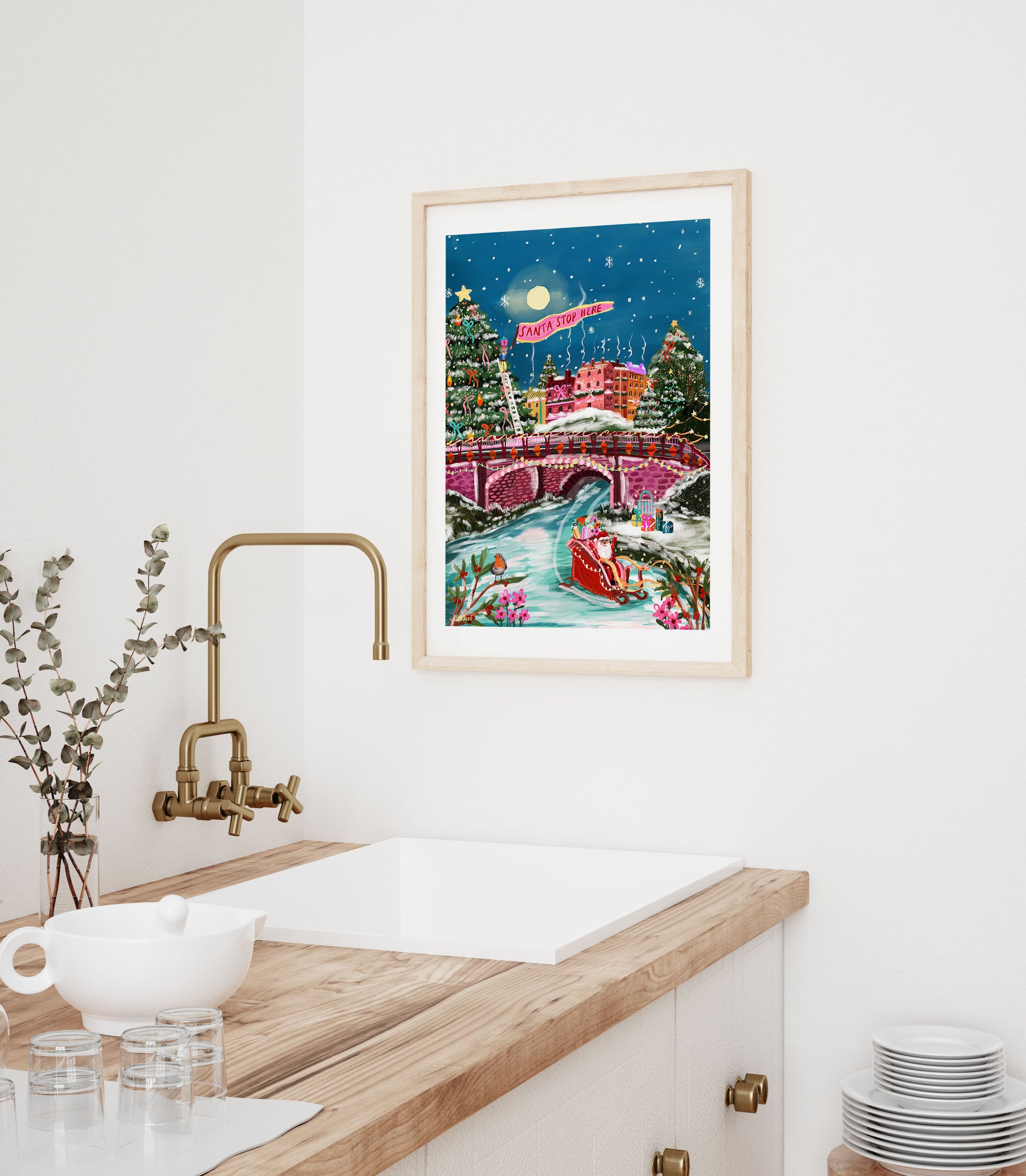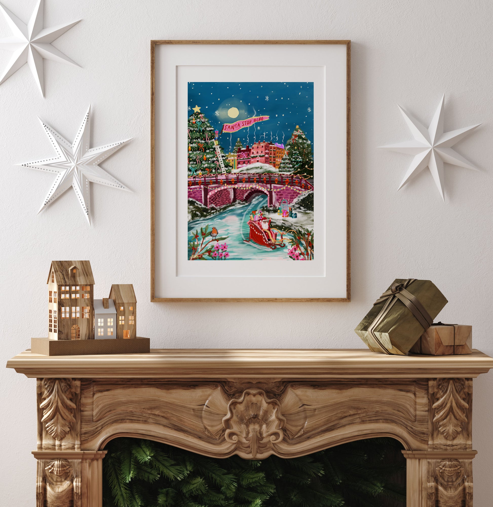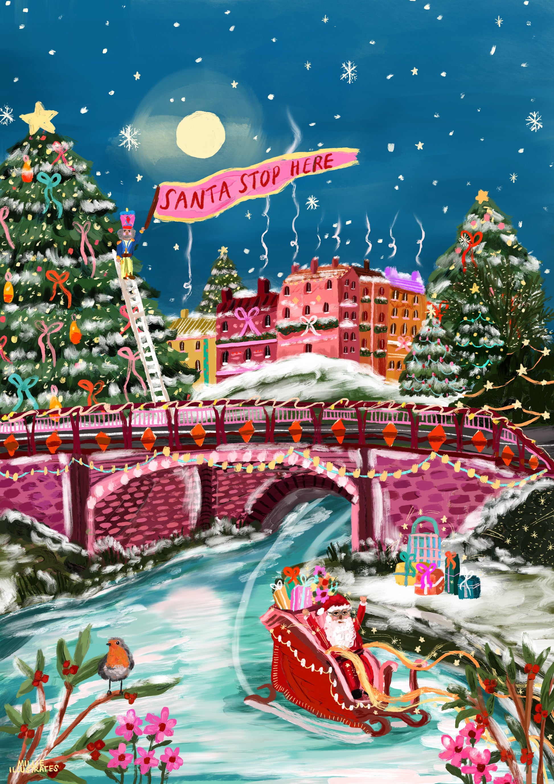 Inspired by a nutcracker village, waiting for the visit from Santa on Christmas Eve - little do they know that Mr Claus has already been! He's taking a break to sleigh-skate down the icy river, dropping off presents as he goes.